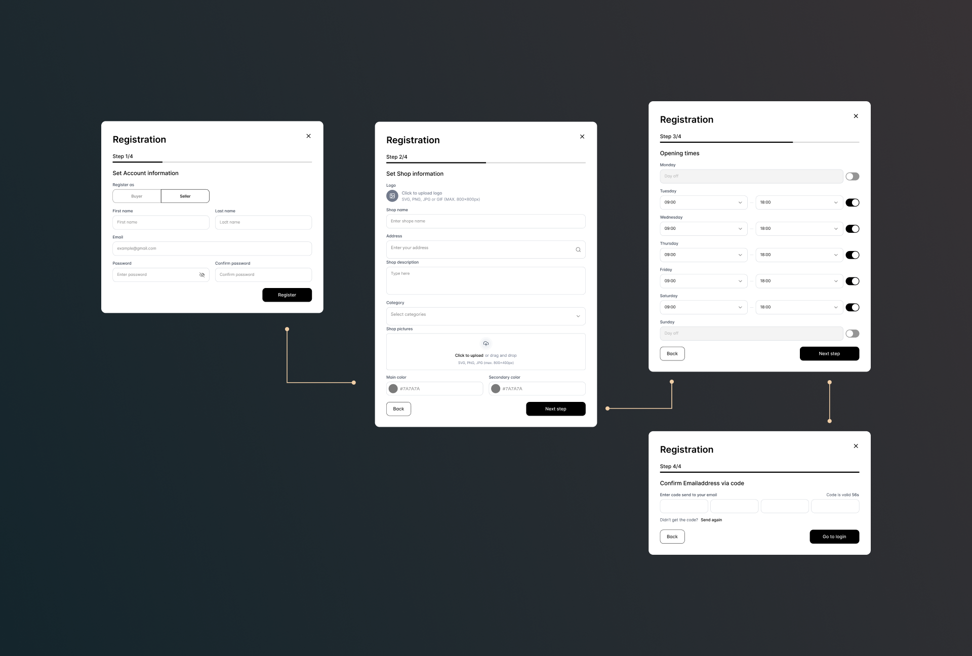 - Design für die gesamte Plattform. Seller Flow, Buyer Flow und Admin Panel