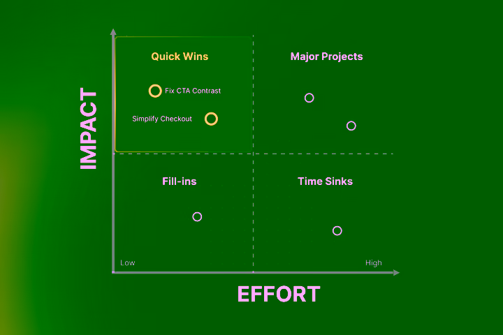 - Quick wins such as checkout optimization or call-to-action improvements show results within 1-4 weeks with 15-30% impact